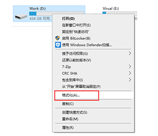 第二步:在资源管理器里把RAW格式的移动硬盘格式化为NTFS文件系统。