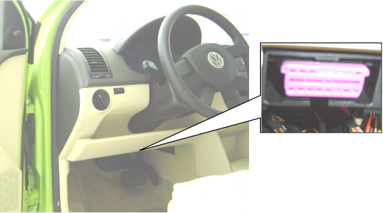 上海大众波罗,仪表板下方, 16P I N ,选用 [ S M A R T O B D I I - 16 ] 测试接头